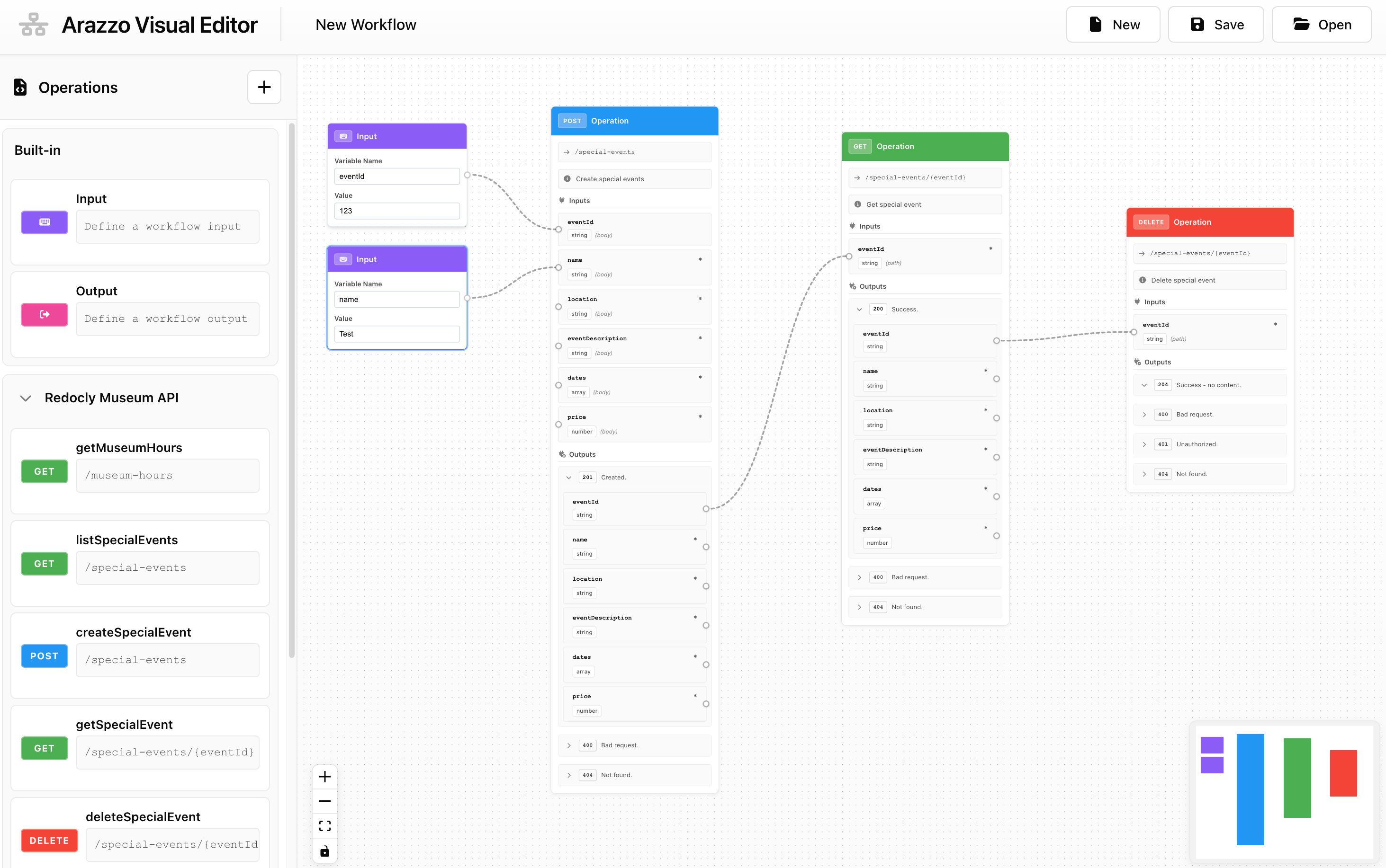 I've been experimenting with a solution that gives you the freedom to translate a workflow as an OpenAPI document. I'm talking about Arazzo, a specification that has the objective of providing "a mechanism that can define sequences of calls and their dependencies." Arazzo does that through a YAML or JSON document where you can, among other things, define how different API operations are called and how the outputs of one operation can feed the inputs of another one. I think this specification has a lot of room for exploration. So much so that I've been creating a workflow editor that can read and write Arazzo files.